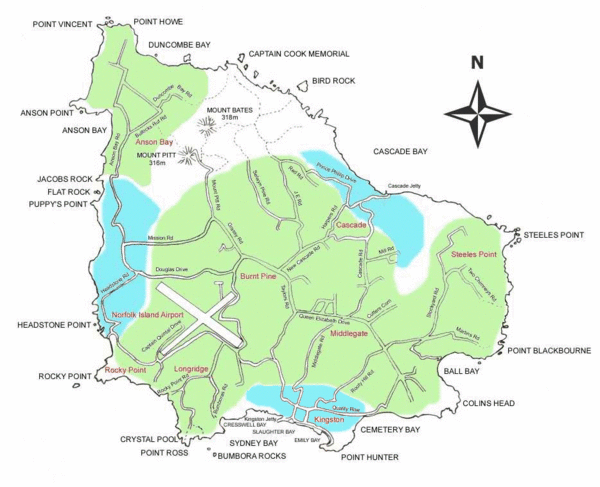 • Norfolk Air operates regular services from Sydney (2hr 30min), Brisbane (2hr 10min), Newcastle (2hr 30min) and Melbourne (3hr 15min).